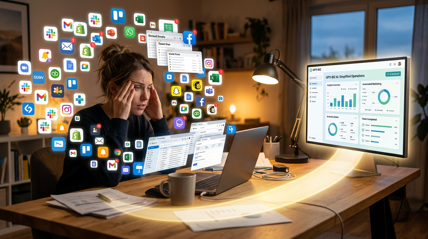 You downloaded the AI writing tool. Then the AI image generator. Then the chatbot, the scheduling assistant, the SEO optimizer, the analytics dashboard, and three more apps someone recommended on LinkedIn. Two years later, you're managing a dozen subscriptions, toggling between tabs, and spending more time babysitting AI than running your business. Sound familiar?